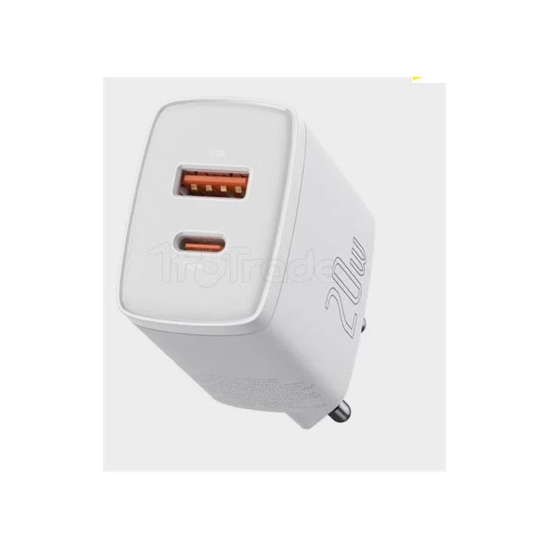 Chargeur secteur Compact 1x port USB-A + 1x port USB-C 20W (Blanc)