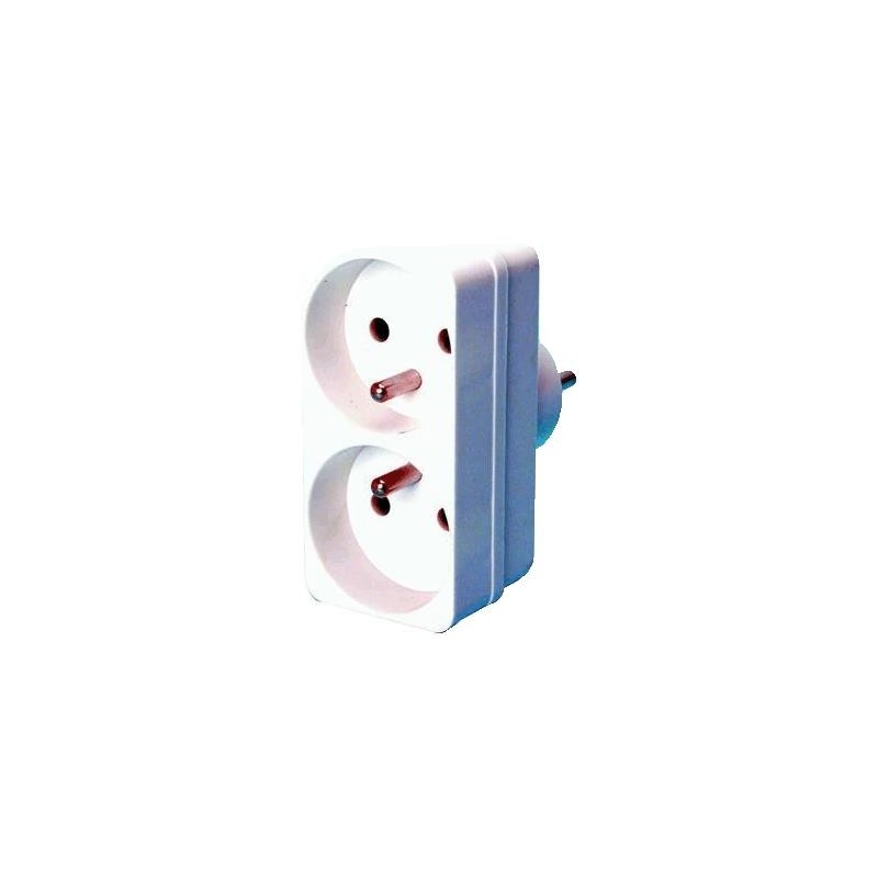 MULTIPRISE BIPLITE 16A 220Vca 2 FICHES EURO DOUBLEUR ELECTRIQUE 2 ENTREES Permet le doublage d'une prise électrique en 2 fiches européennes. Fiche biplite 2 P T 10/16 ampères. puissance 3680 Watts sous 230 Volts. Broches et alvéoles Ø 4.8mm. Branchement des fiches sur le devant. Sortie des câbles des appareils branchés vers le haut ou vers le bas par retournement de la multiprise.