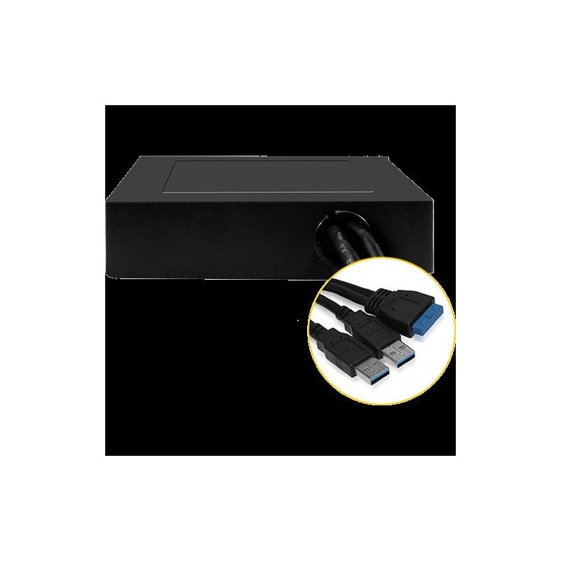 Interface ext: 4 ports USB 3.0 Interface int: 2 x USB 3.0 Type A 1 x USB 3.0 20 pins Câbles: 550 mm vers le connecteur interne USB 3.0 20 pins 750 mm vers les connecteurs USB 3.0 type A Boitier: 3"1/2 métal / Plastique Dimensions: 102 x 24.5 x 119 mm Poids: 350 g