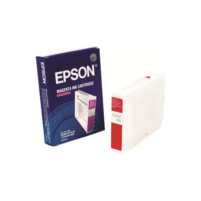 Description du produit Epson - magenta - original - cartouche d'encre Type de consommable Cartouche d'encre Technologie d'impression Jet d'encre Couleur d'impression Magenta Durée de vie Jusqu'à 2 millions de caractères Conçu pour Stylus Color 3000.3000PS