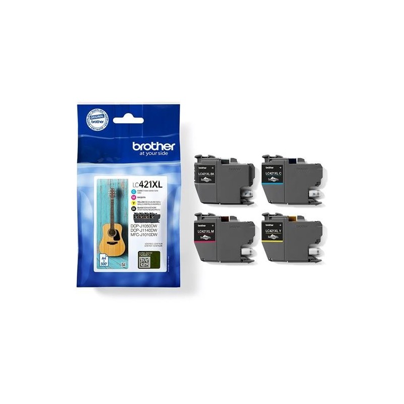 Description du produit Brother LC421XL - pack de 4 - XL - noir.jaune.cyan.magenta - original - cartouche d'encre Type de Produit Cartouche d'encre Technologie d'impression Jet d'encre Couleur d'impression Noir.jaune.cyan.magenta Rendement de la cartouche XL Rendement Jusqu'à 500 pages ISO/IEC 24711 Nombre inclus Pack de 4 Compatible avec Brother DCP-J1140DW.MFC-J1010DW