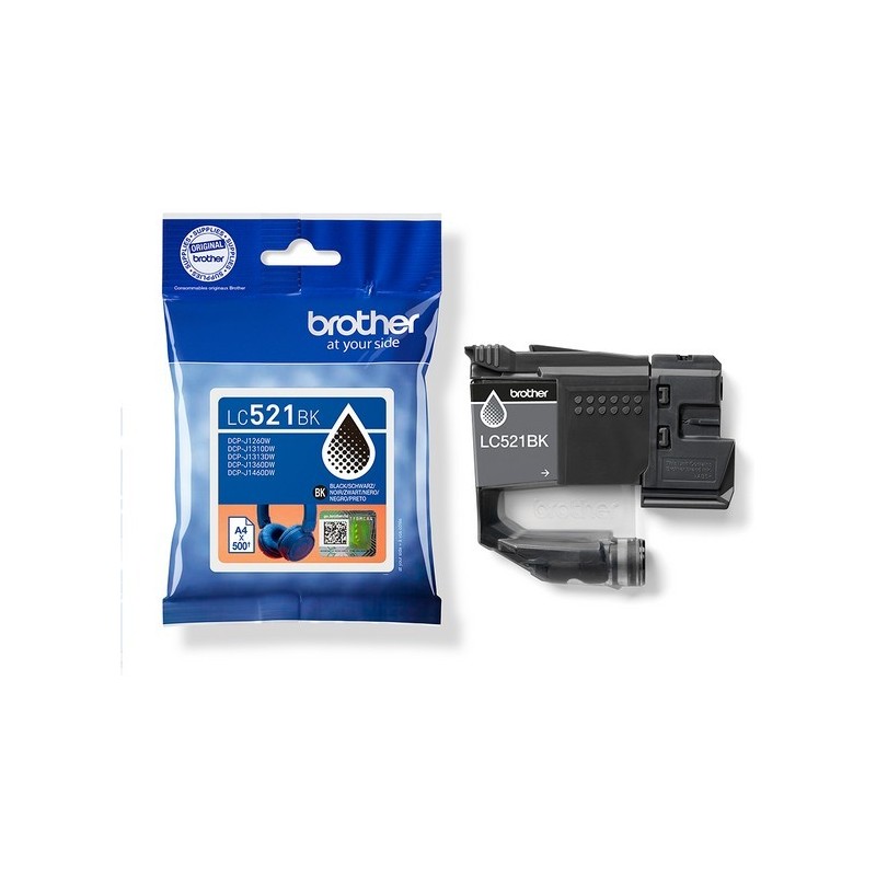 Produit: Désignation: BROTHER Black ink cartridge yield up to 500 pages Description: Brother LC521BK - Noir - original - pack d'oreillers - cartouche d'encre - pour Brother DCP-J1260W. DCP-J1310DW Code EAN: 4977766839174 Garantie Fabricant : 12 mois de garantie retour atelier Consommable Type de consommable: Cartouche d'encre Technologie d'impression: Jet d'encre Couleur: Noir Nombre inclus: Pack de 1 Rendement: Jusqu'à 500 pages ISO/IEC 24711 Divers Type de Conditionnement: Pack d'oreillers Information de compatibilité Compatible avec: Brother DCP-J1260W. DCP-J1310DW