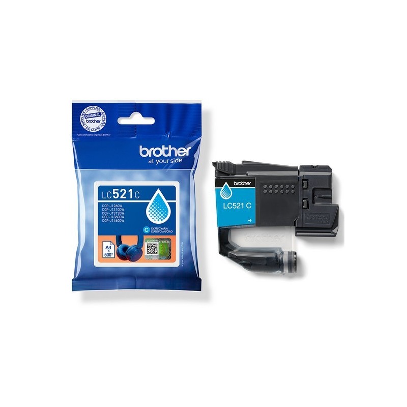 Produit: Désignation: BROTHER Cyan ink cartridge yield up to 500 pages Description: Brother LC521C - Cyan - original - pack d'oreillers - cartouche d'encre - pour Brother DCP-J1260W. DCP-J1310DW Code EAN: 4977766839204 Garantie Fabricant : 12 mois de garantie retour atelier Consommable Type de consommable: Cartouche d'encre Technologie d'impression: Jet d'encre Couleur: Cyan Nombre inclus: Pack de 1 Rendement: Jusqu'à 500 pages ISO/IEC 24711 Divers Type de Conditionnement: Pack d'oreillers Information de compatibilité Compatible avec: Brother DCP-J1260W. DCP-J1310DW