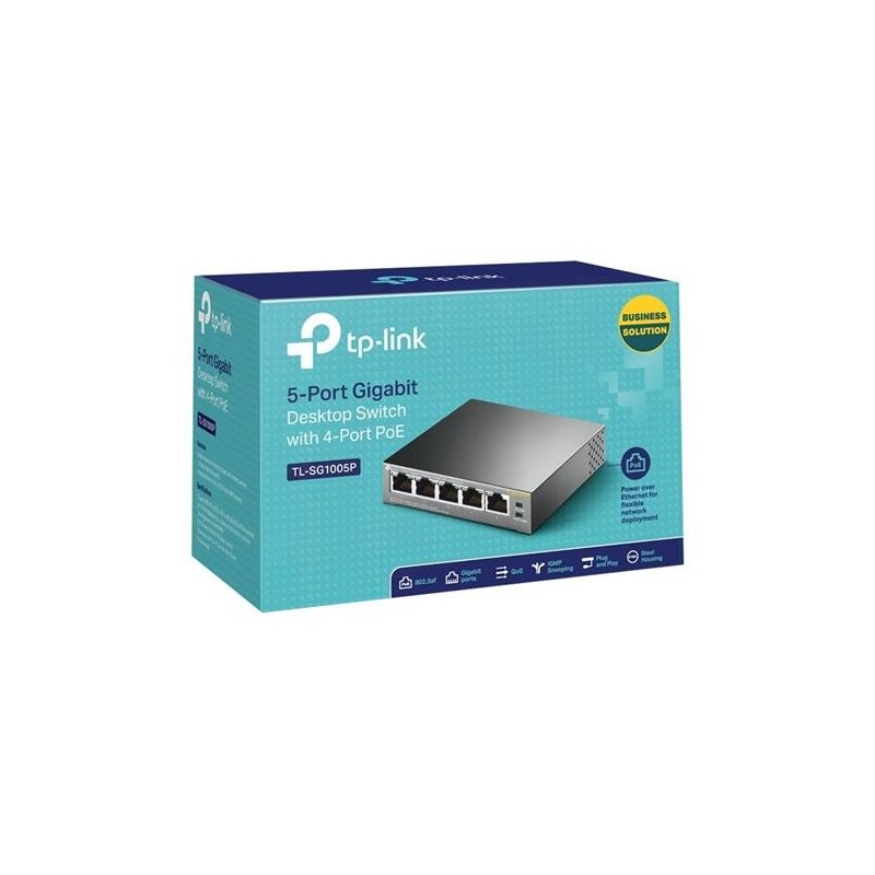 Description: TP-Link TL-SG1005P - Commutateur - non géré - 4 x 10/100/1000 (PoE) + 1 x 10/100/1000 - de bureau - PoE (56 W)