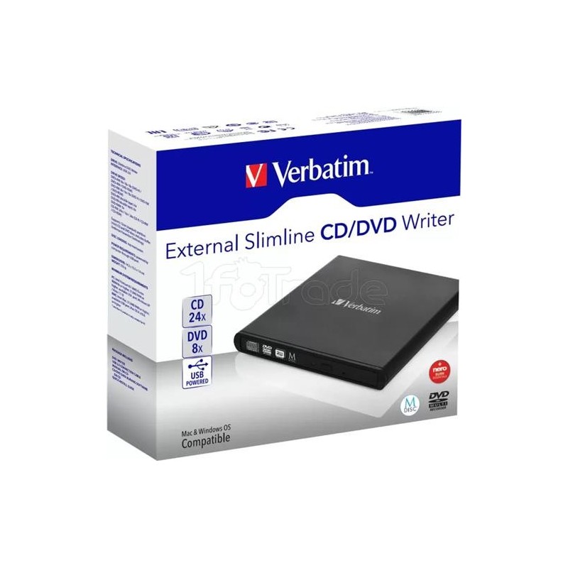 Lecteur Graveur CD DVD - externe - Verbatim Slimline (Noir) - 8X DVD